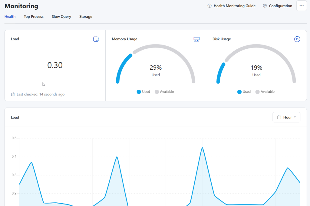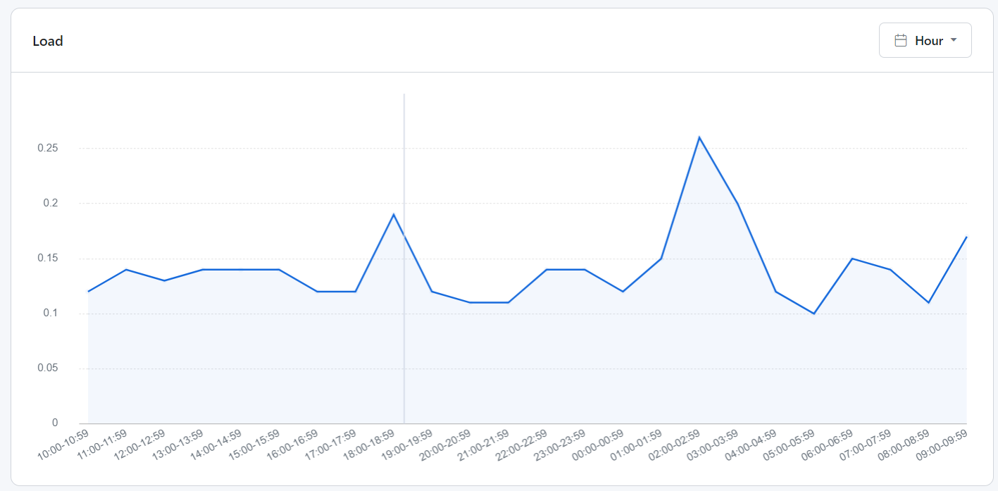 • Load: Immediately see your server’s current workload without needing to interpret the 1, 5, and 15-minute averages.