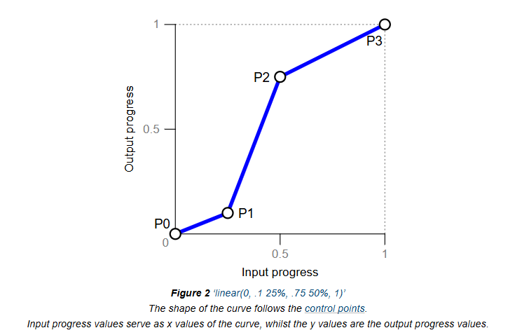 We have two points, and each point is defined with two values (the “output” progress and “input” progress). The “output” progress is the animation (i.e., what is defined within the keyframes) and the “input” progress is the time.