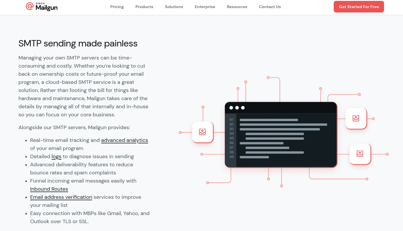 Mailgun’s SMTP relay services allow senders to efficiently send both marketing and transactional emails without the need to manage their own mail servers. Even if you do have your own email server, pairing it with an SMTP service such as Mailgun offers additional benefits including better stability and deliverability.