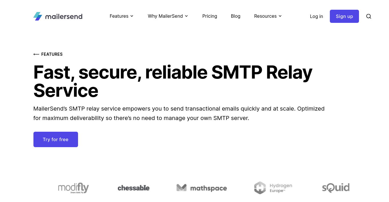 MailerSend is a transactional email sending service that provides a fast, secure, and reliable SMTP relay service without the need to manage your own SMTP server. It supports sending email from any app, device, or email client using just an SMTP server name, port, username, and password – no complex coding required.