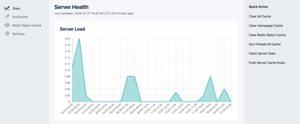 If you find yourself constantly modifying plugin settings, consider RunCache. It combines page, object, and edge caching into a single dashboard, which eliminates the need for complex plugins that don’t effectively communicate with your server.